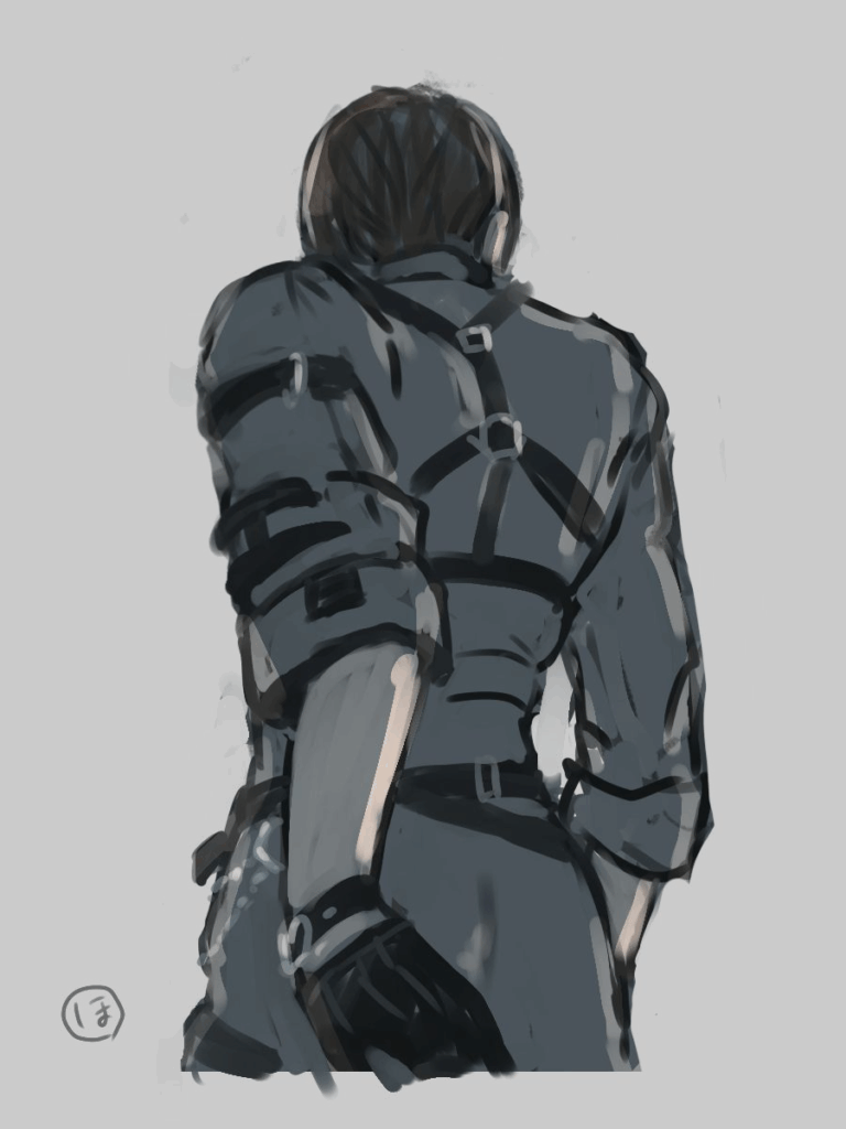 アイナナのイベント『Shuffle Work』『Shuffle Work~Le Fierté COLLECTION~』の衣装がベルトだらけだ。(ハーネス?!)今から練習しとこうと思って描いた。随分攻めた衣装出してきたわね。